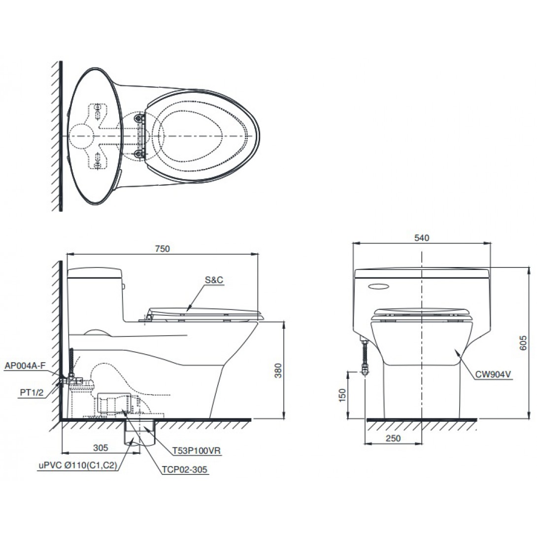Bồn Cầu TOTO MS904T8 Một Khối Nắp Êm TC600VS
