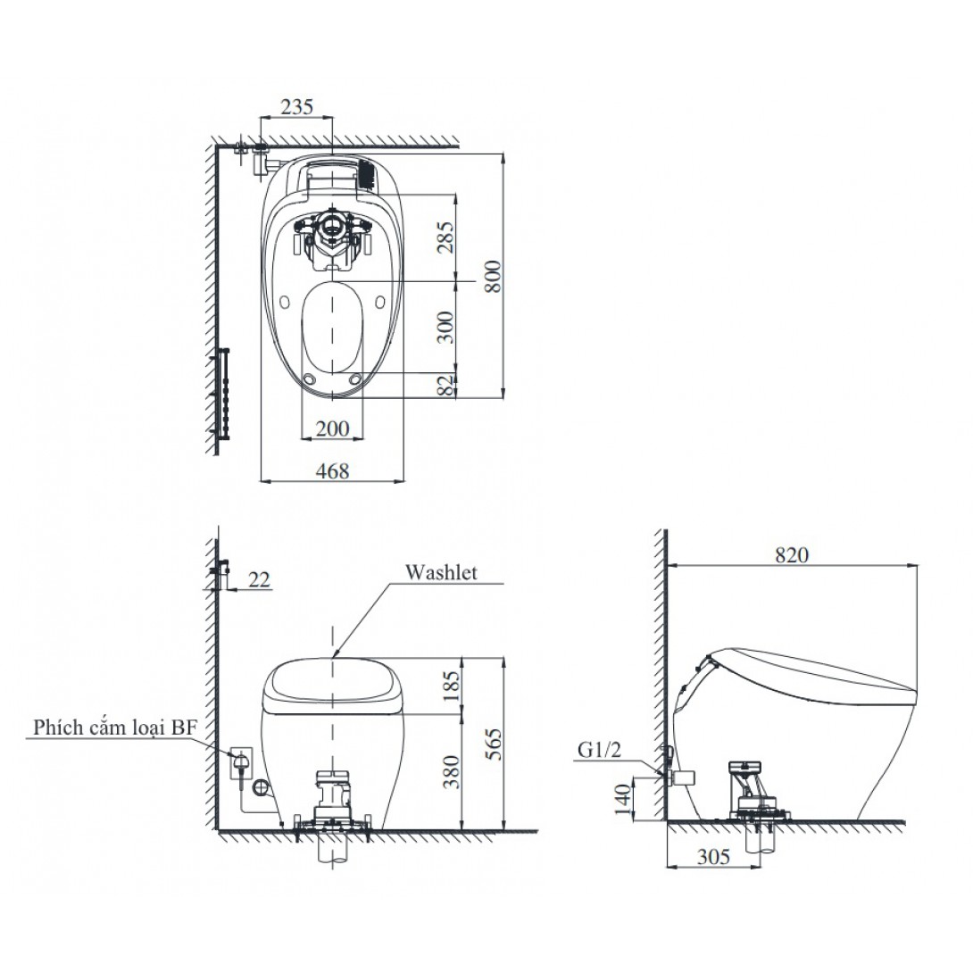 Bồn Cầu Thông Minh TOTO CS911VT/TCF87220GAA/T53P100VR Neorest LS Đen