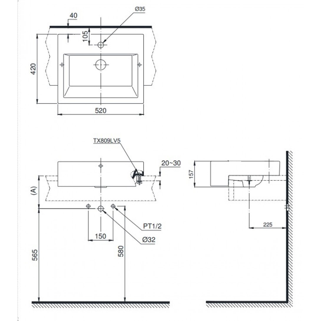 Chậu Rửa Mặt Lavabo COTTO C02237 Riviera Bán Âm Bàn