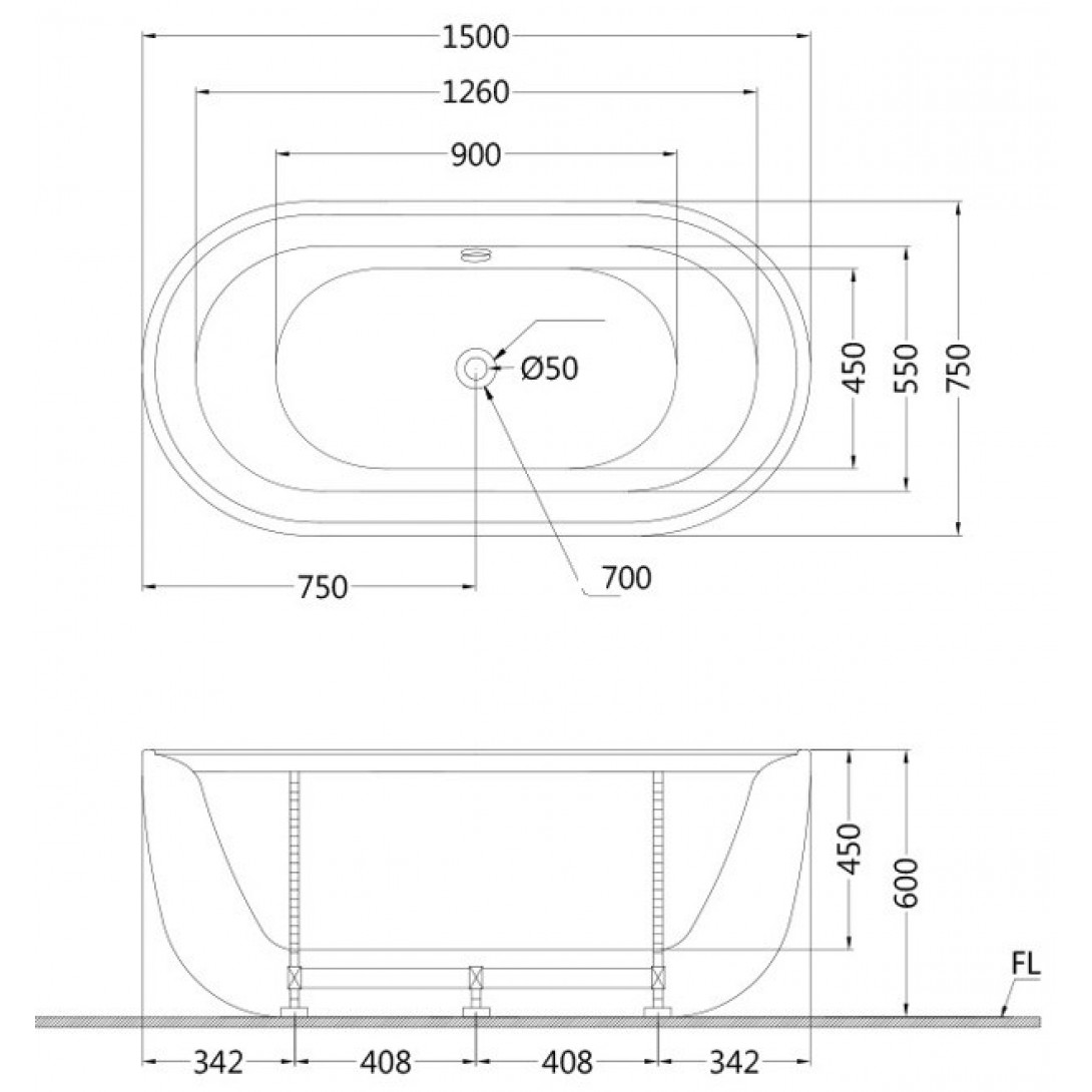 Thông số bồn tắm đặt sàn Caeasr AT0750 1.5M