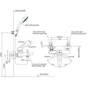 Vòi Sen Tắm Cây Inax BFV-1115S-1C (BFV1115S1C) Nóng Lạnh
