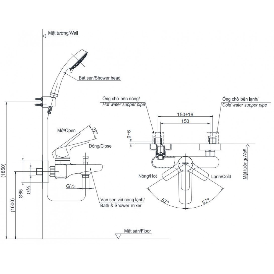 Vòi Nóng Lạnh Lavabo CAESAR B136CU (B136C) Kết Hợp Tay Sen