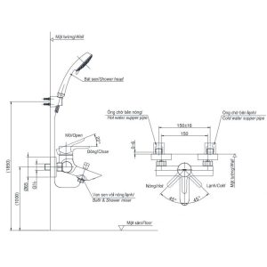 Vòi Nóng Lạnh Lavabo CAESAR B136CU (B136C) Kết Hợp Tay Sen