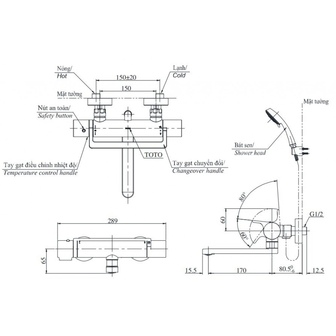 Vòi Sen Cây TOTO TX454SFV2BRN Nhiệt Độ
