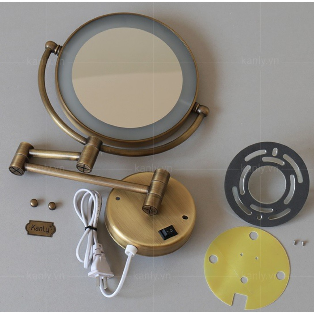Gương cạo râu có đèn led, gương phòng tắm, gương cầu 2 mặt, gương phóng to, với 2 mặt, một mặt phẳng và một mặt cầu soi chi tiết râu, mụn.