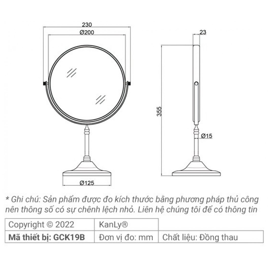Bản vẽ kỹ thuật gương 2 mặt mini Kanly GCK19B