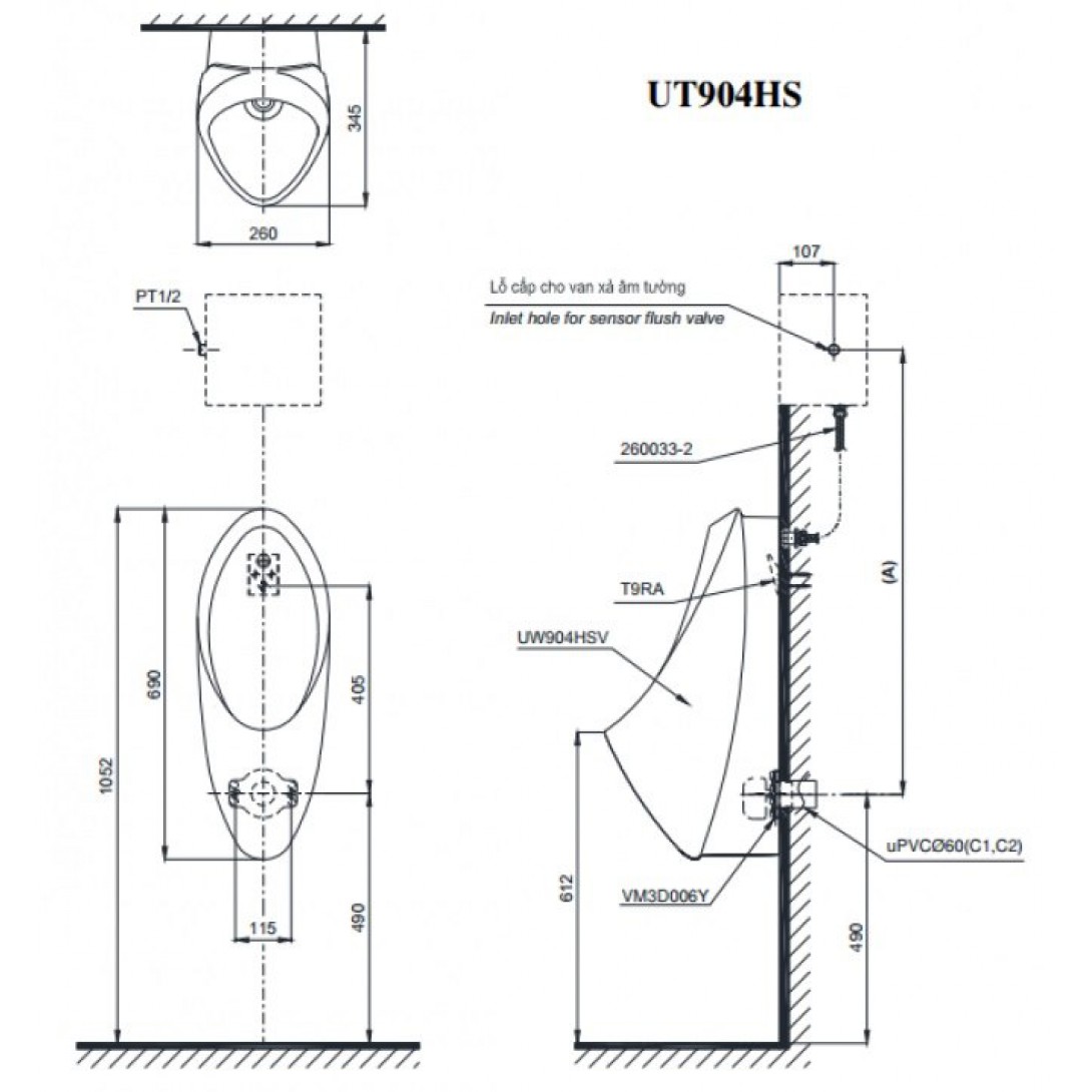 Bồn Tiểu Nam TOTO USWN900AE#XW HHF90603 Cảm Ứng Dùng Điện