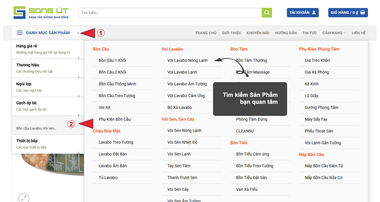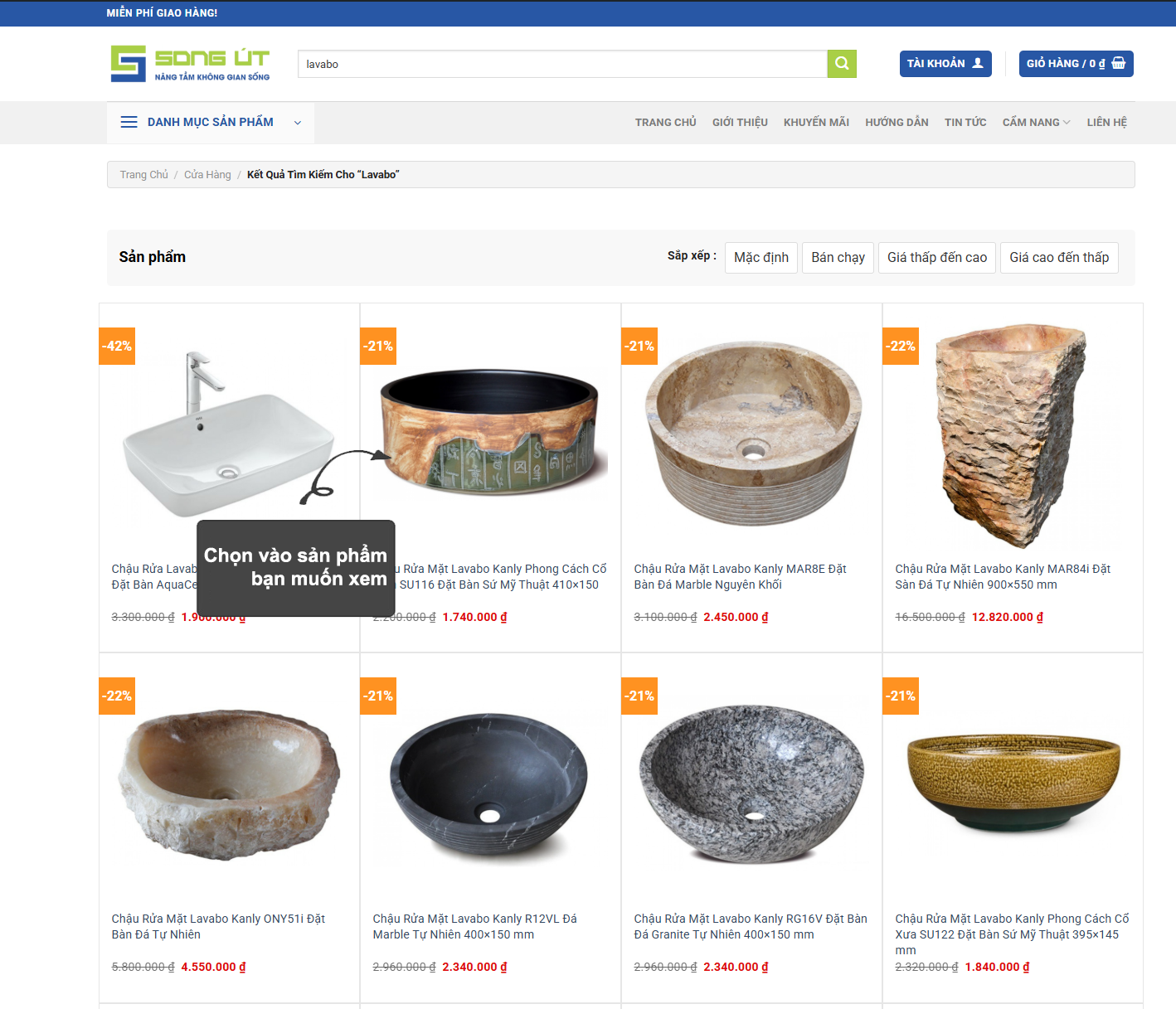 Hoặc sử dụng danh mục sản phẩm của website để tìm sản phẩm.