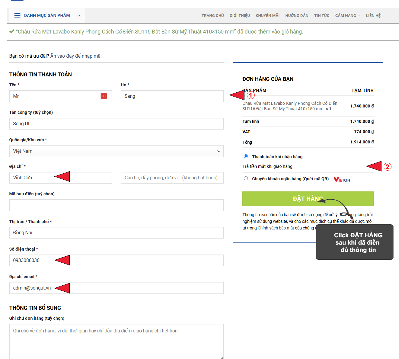 Chọn hình thức thanh toán là bước cuối cùng để đặt hàng online, SONGUT.VN sẽ liên hệ quý khách để xác nhận và hoàn tất thủ tục.