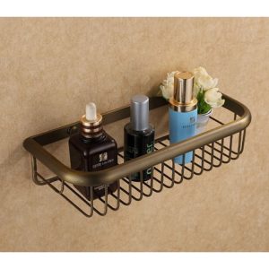 Giá đựng đồ phụ kiện phòng tắm này chất liệu bằng đồng thau, phù hợp tông nội thất nhà cổ điển, hoàng gia, quý tộc sang trọng hoặc nội thất tông kem, nâu, mộc.