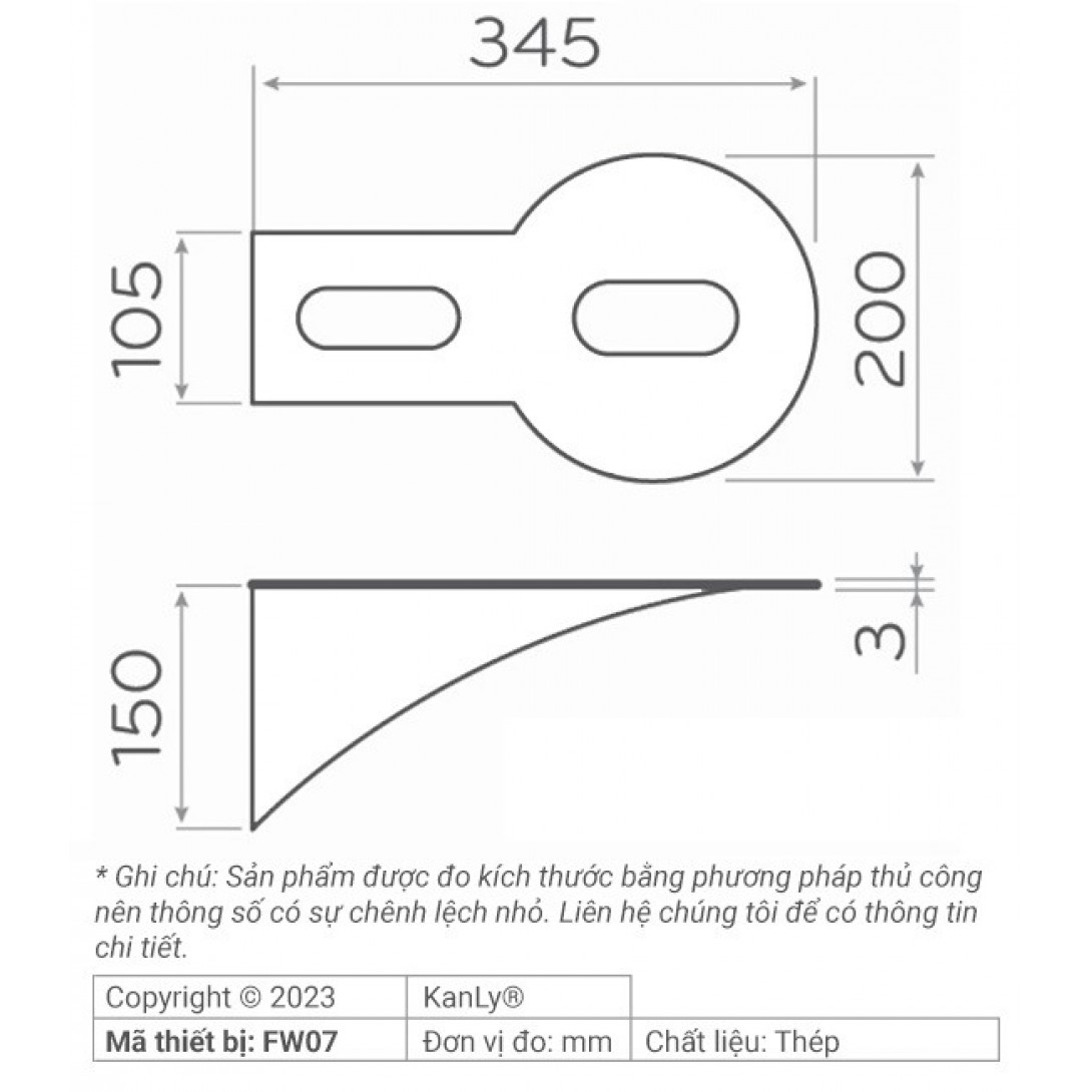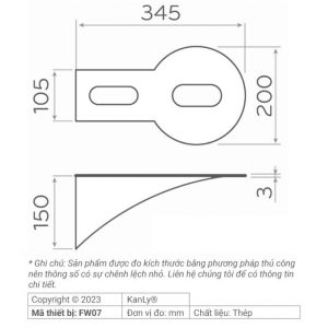 Bản vẽ giá đỡ chậu lavabo Kanly FW07 treo tường