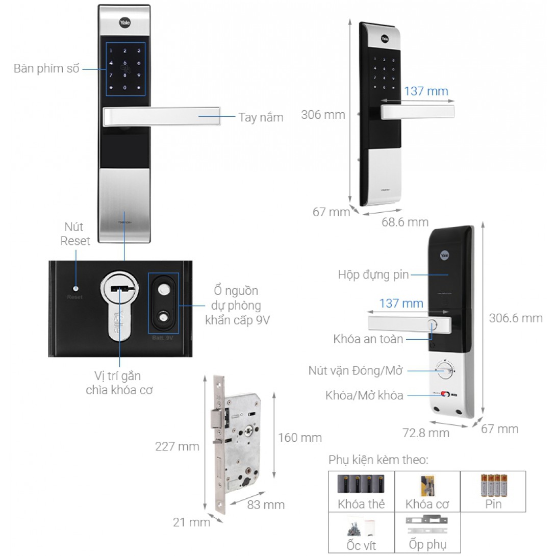 Khóa Điện Tử Yale J20A Thẻ Từ Rimlock