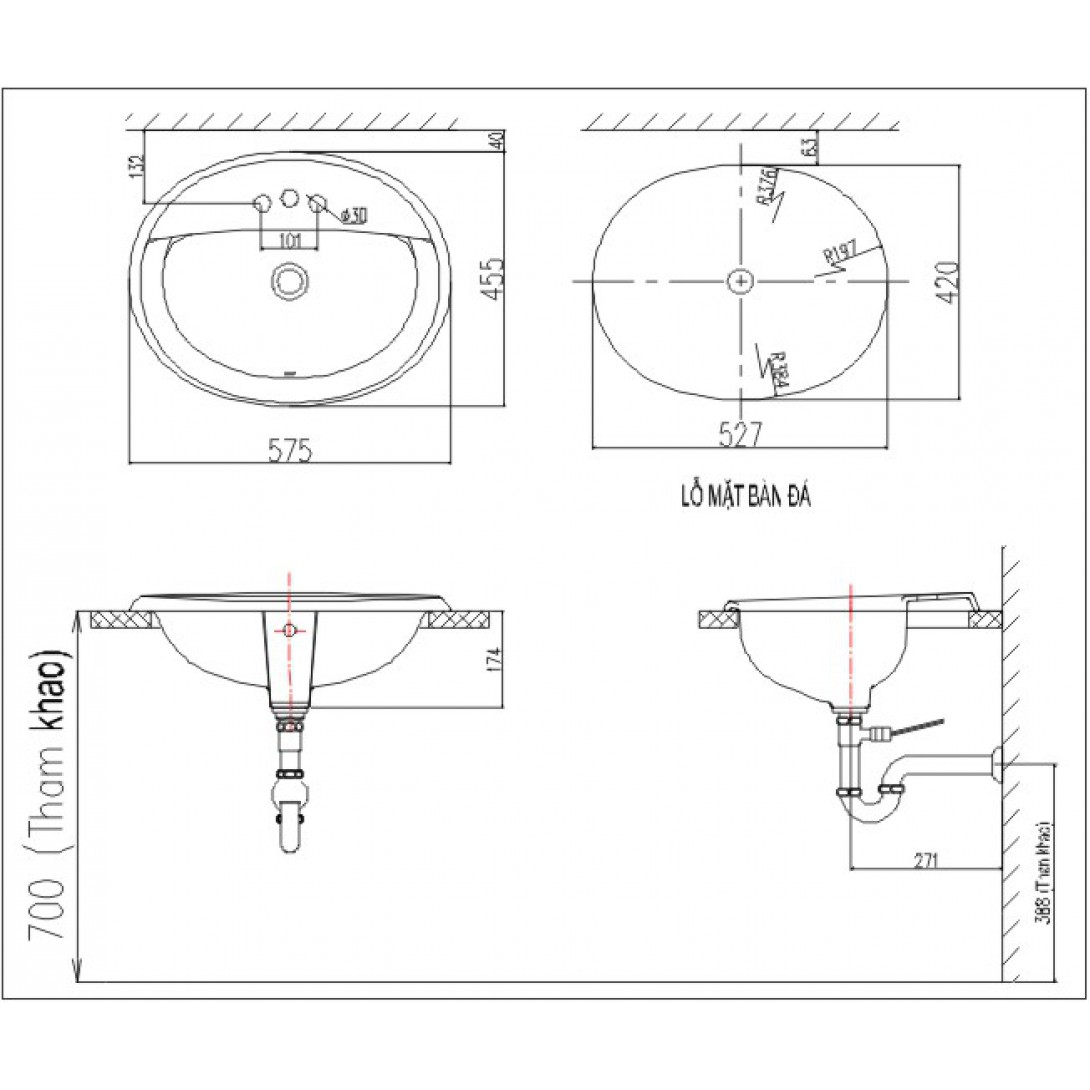 Chậu Rửa Mặt Lavabo COTTO C02237 Riviera Bán Âm Bàn