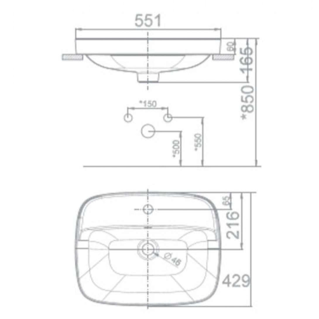 Chậu Rửa Mặt Lavabo COTTO C0225 Kate Bán Âm Bàn
