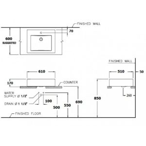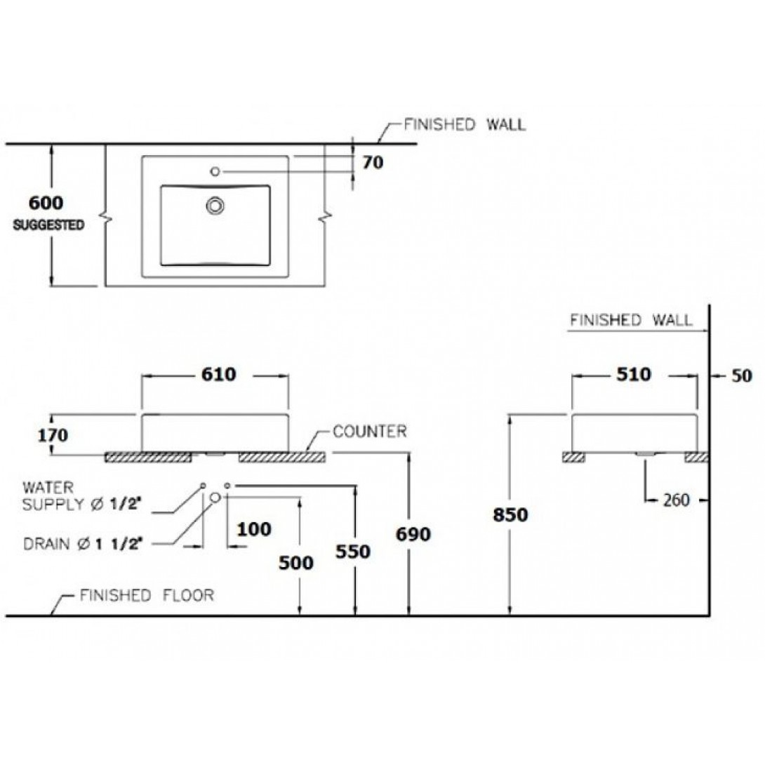 Chậu Rửa Mặt Lavabo COTTO C02237 Riviera Bán Âm Bàn
