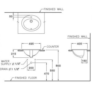 Chậu Rửa Mặt Lavabo COTTO C0240 Julia Bán Âm Bàn