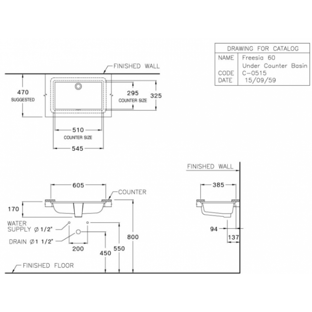 Chậu Rửa Mặt Lavabo COTTO C02237 Riviera Bán Âm Bàn