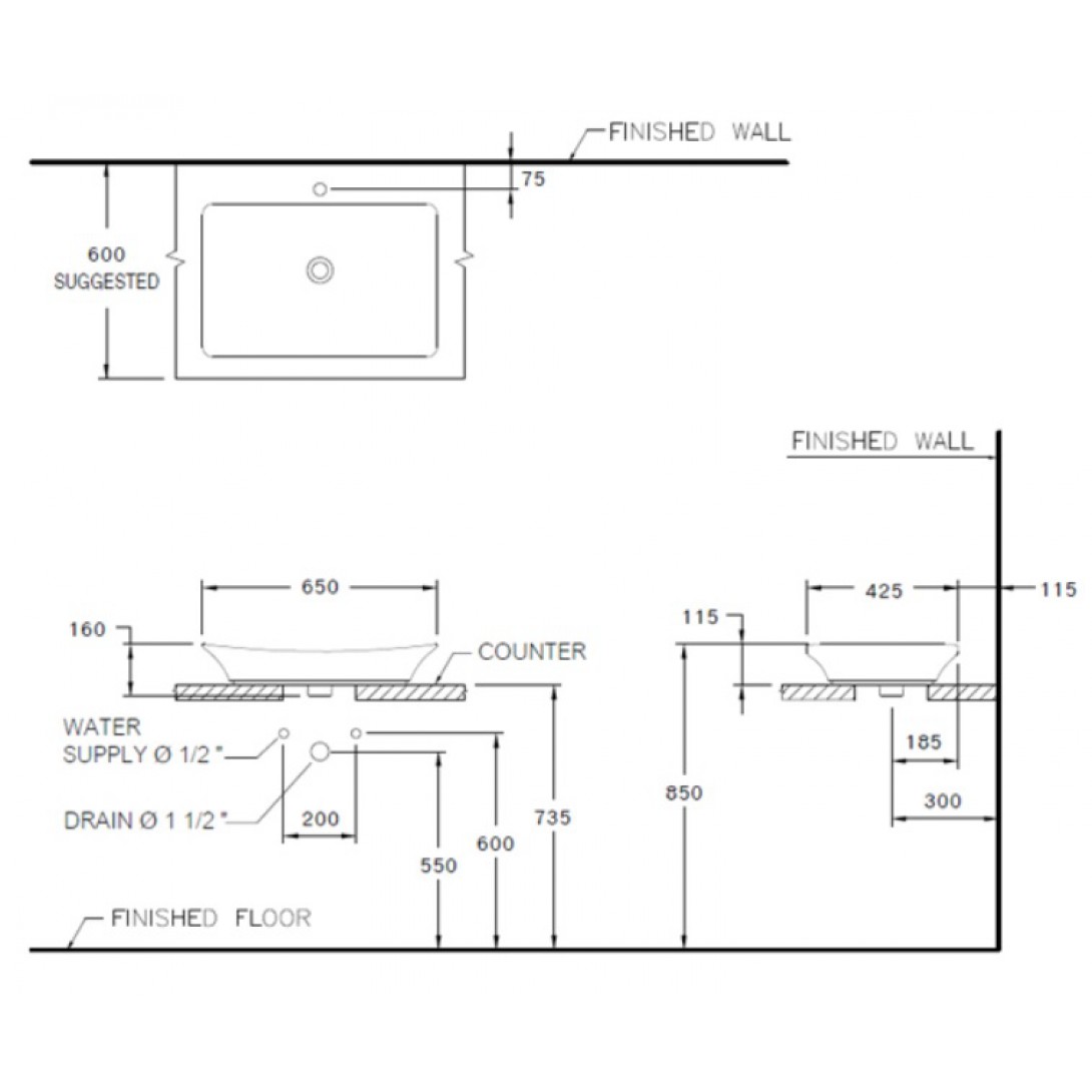 Chậu Rửa Mặt Lavabo COTTO C0225 Kate Bán Âm Bàn