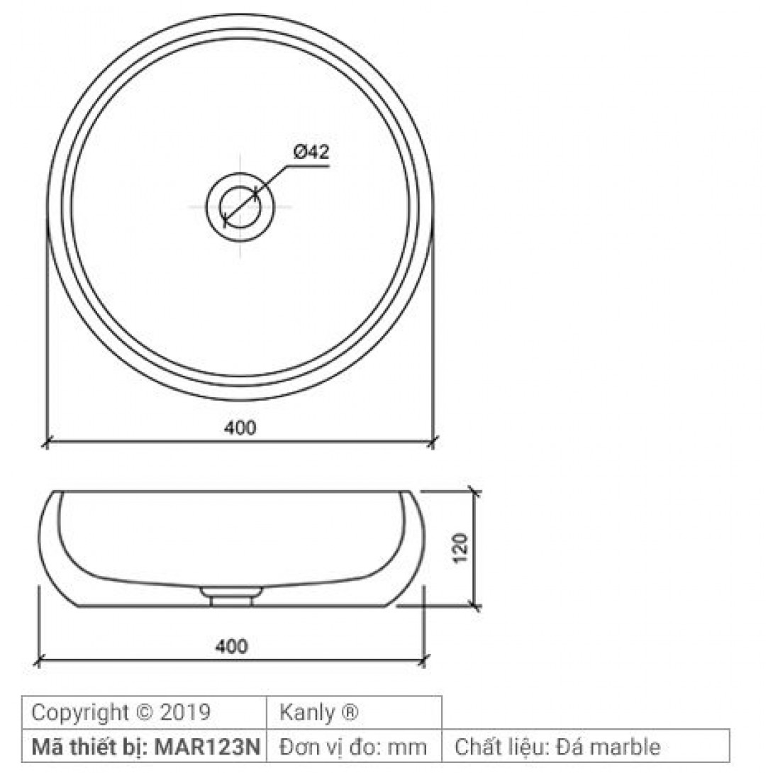 Bản vẽ kích thước chậu lavabo đá tự nhiên MAR123N