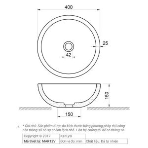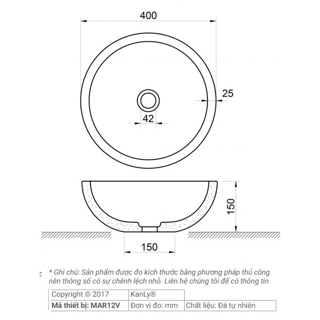 Bản vẽ kích thước chậu đá tự nhiên Kanly MAR12V