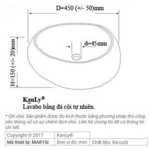 Bản vẽ kích thước chậu lavabo mặt đá tự nhiên Kanly MAR15i