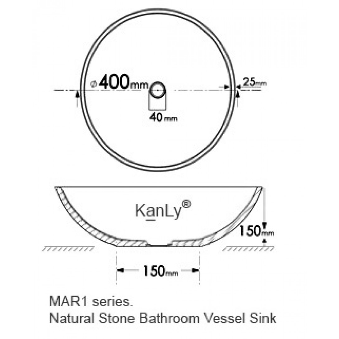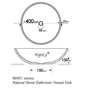 Bản vẽ kích thước chậu rửa mặt đá tự nhiên Kanly MAR17V