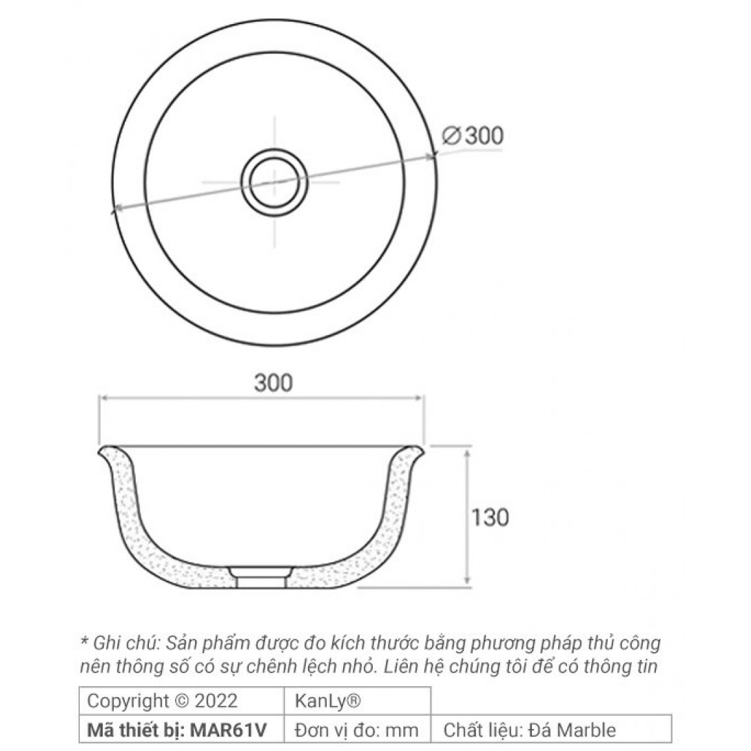 Hãy là người đầu tiên nhận xét “Chậu Rửa Mặt Lavabo Kanly MAR61V Đặt Bàn Đá Marble 300×130 mm”