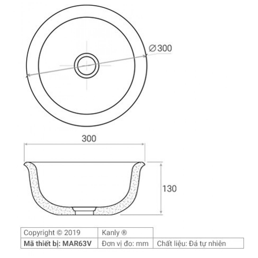 Bản vẽ kích thước chậu đá tự nhiên Kanly MAR63V