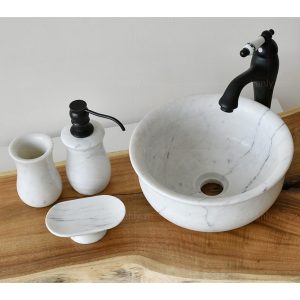 Lavabo đá marble trắng MAR63V có kích thước đường kính khoảng 300mm, cùng chiều cao 130mm nhỏ gọn, phù hợp lắp đặp cho khu vệ sinh có không gian nhỏ mà vẫn thể hiện vẻ đẹp mỹ thuật của sự tự nhiên, sang trọng.
