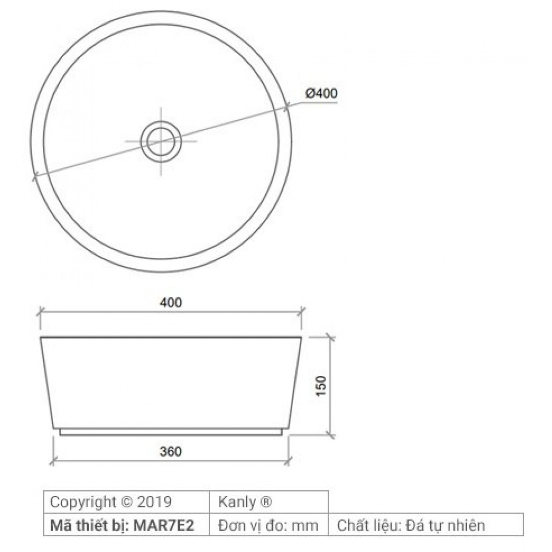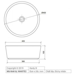 Bản vẽ kích thước chậu rửa mặt đá tự nhiên Kanly MAR7E2
