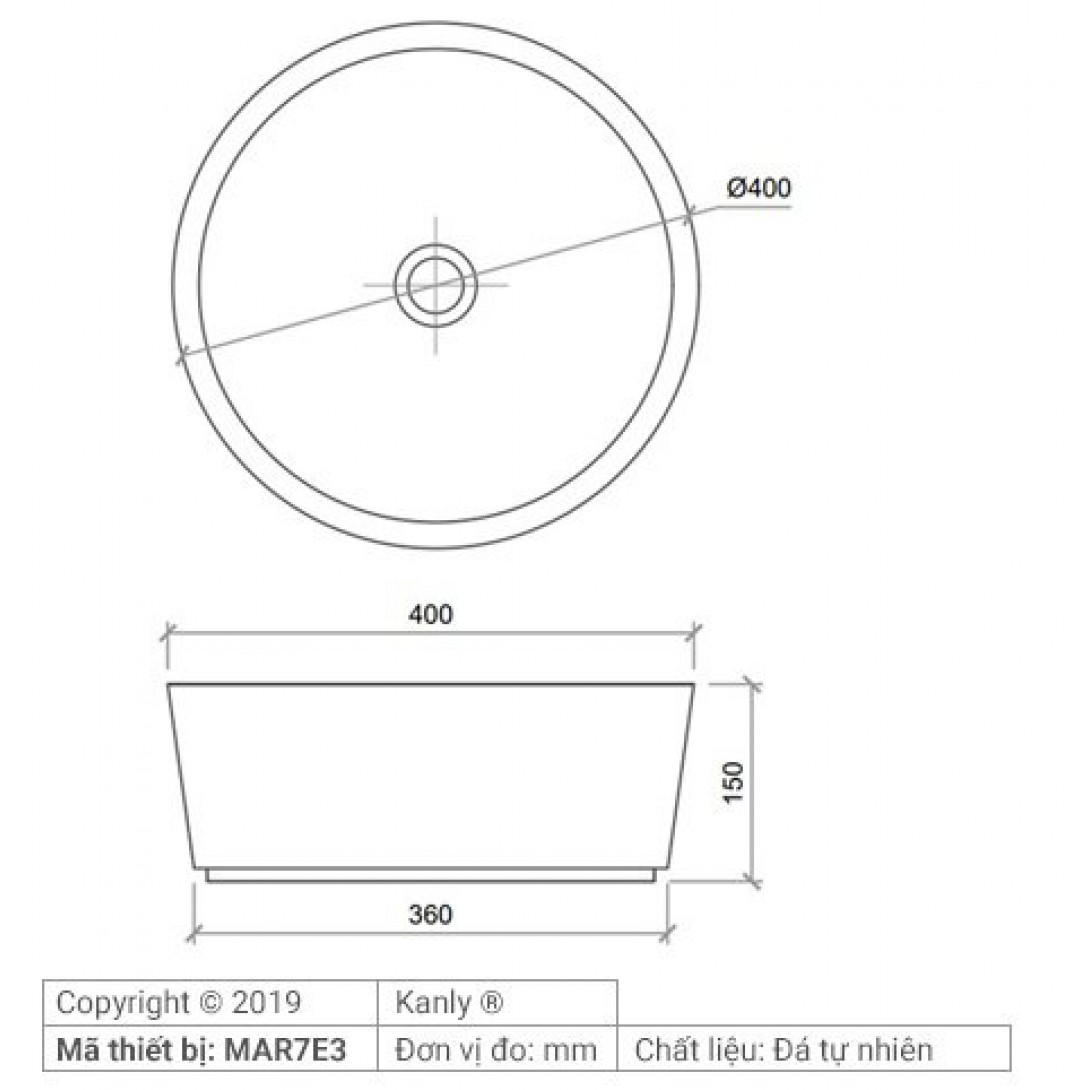 Bản vẽ kích thước chậu rửa mặt đá tự nhiên Kanly MAR7E3