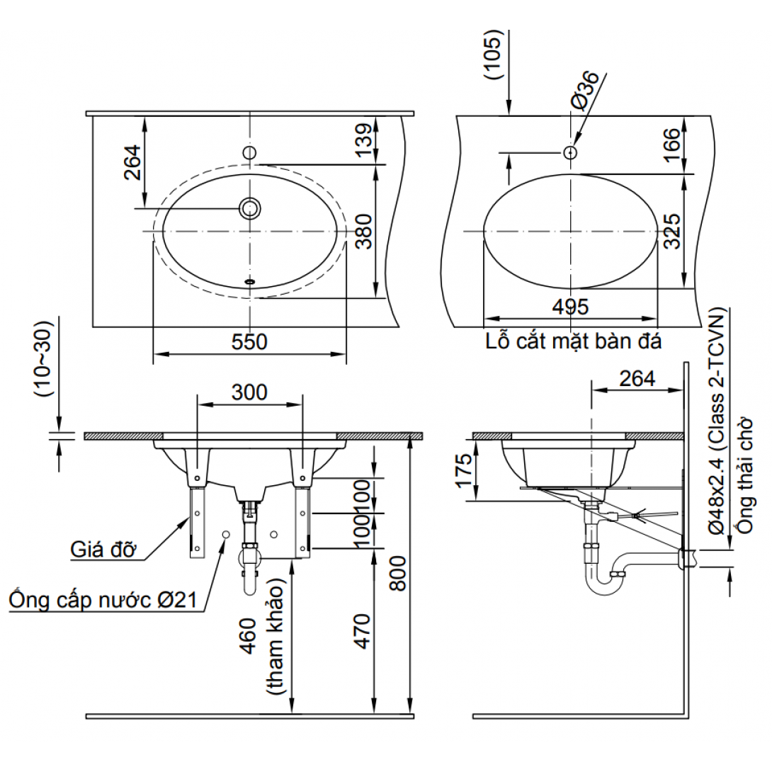 Chậu Rửa Mặt Lavabo COTTO C0240 Julia Bán Âm Bàn