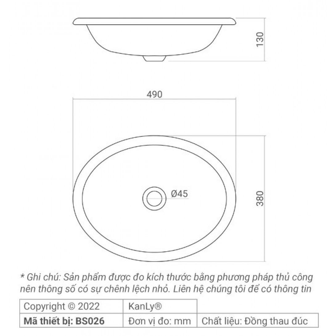 Bản vẽ kích thước lavabo đồng Kanly BS 026