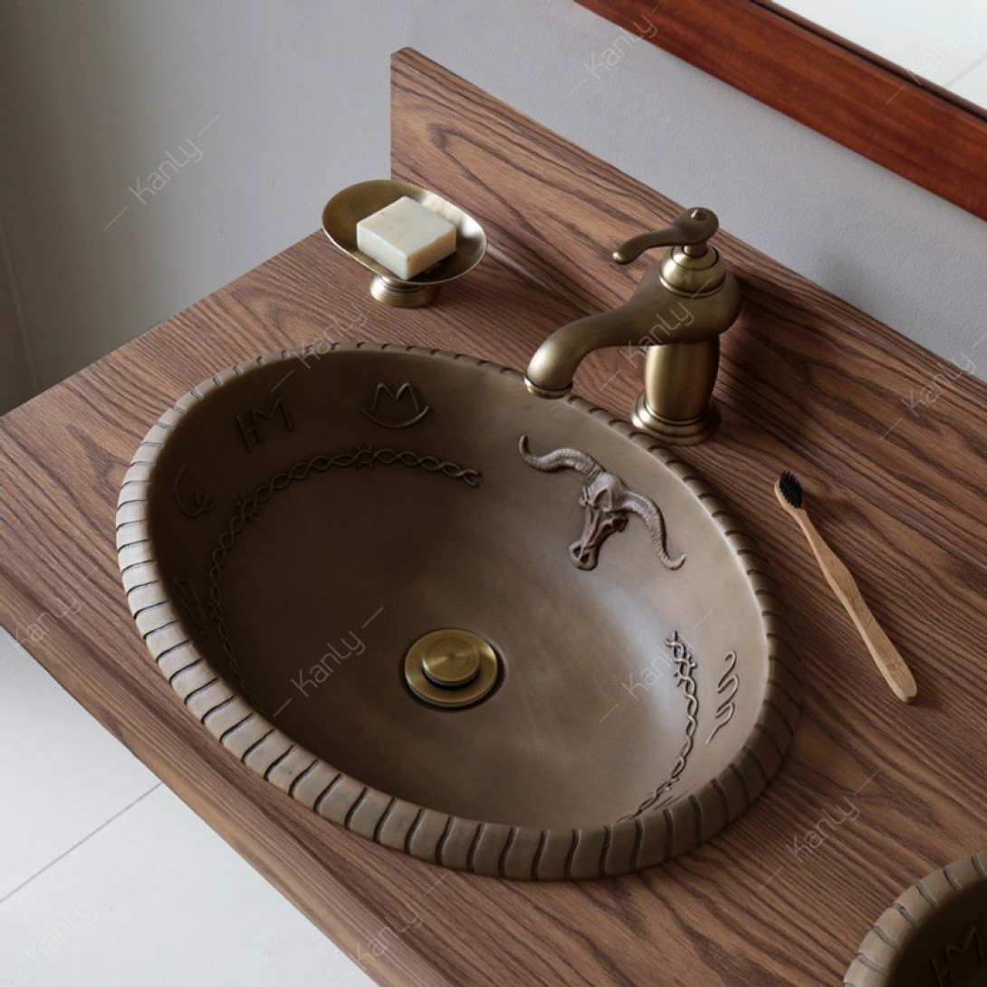 Hãy là người đầu tiên nhận xét “Chậu Lavabo Kanly BS026 Đặt Bàn Đồng Thau Họa Tiết Đầu Trâu 490x380x130 mm” Hủy