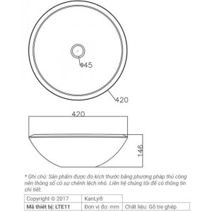 Bản vẽ kích thước chậu rửa mặt Kanly LTE 11 420mm