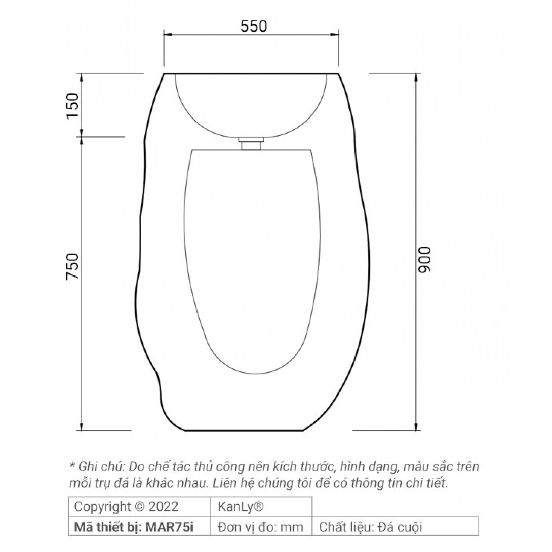 Lavabo Kanly MAR75i Đá Cuội Tự Nhiên Nguyên Khối Đặt Sàn