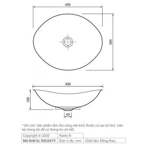Bản vẽ kích thước lavabo đồng Kanly RSC 047V