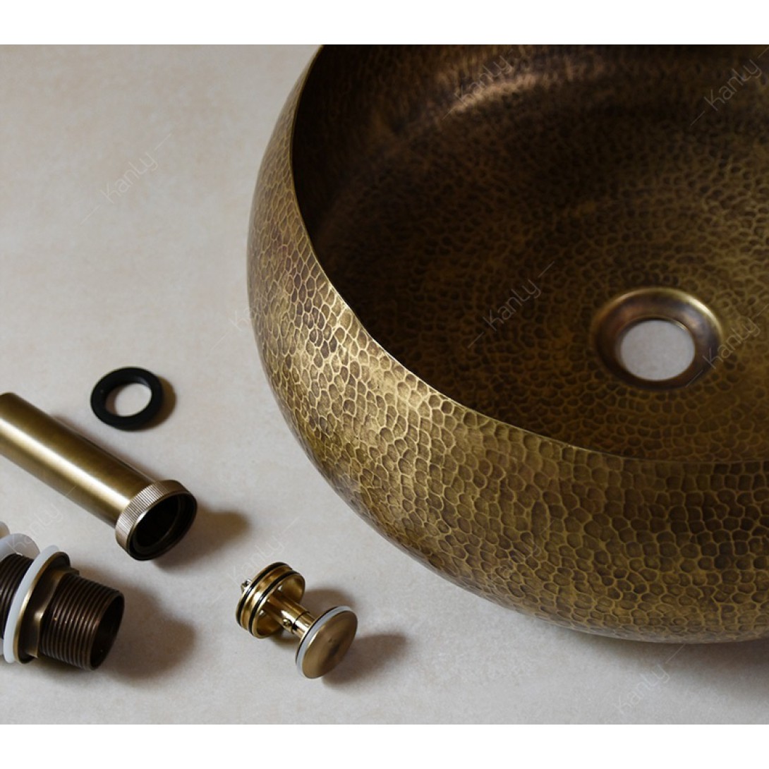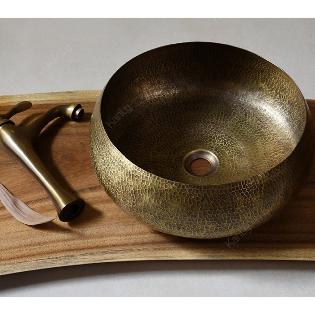 Chất liệu: đồng cổ điển có kích thước tiêu chuẩn phổ biến với đường kính phủ bì khoảng 420mm, đường kính mặt chậu khoảng 360mm và chiều cao khoảng 160mm