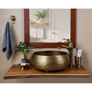 Hình ảnh thực tế chậu rửa mặt đồng thau Kanly RSC122V đặt bàn
