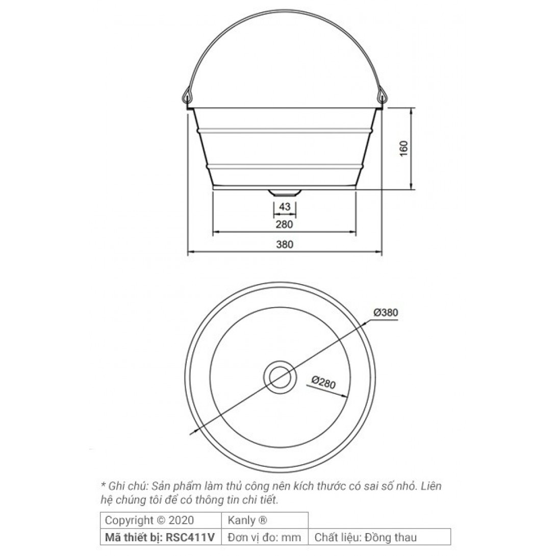 Bản vẽ kích thước lavabo đồng Kanly RSC 411V