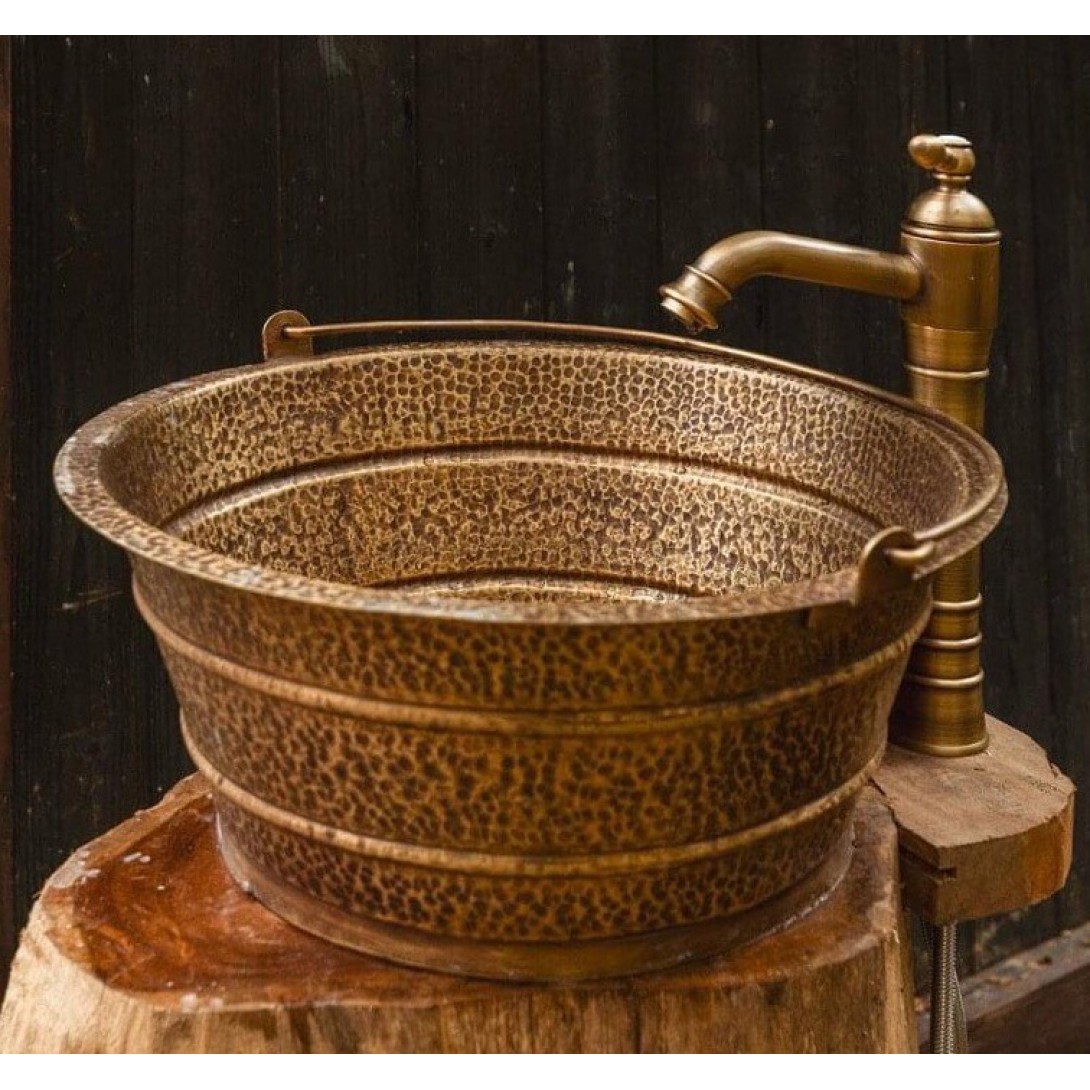 Bồn rửa mặt, rửa tay bằng đồng phong cách mộc mạc