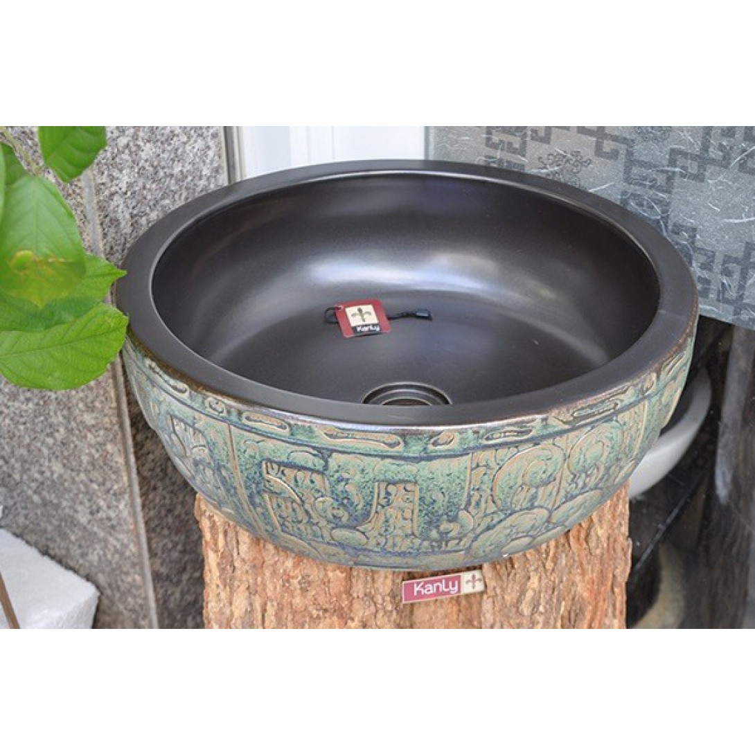 Chậu rửa Kanly bằng gốm sứ sản xuất thủ công, chậu sứ mỹ thuật, có thể dùng như lavabo sứ để nổi trên mặt bàn.