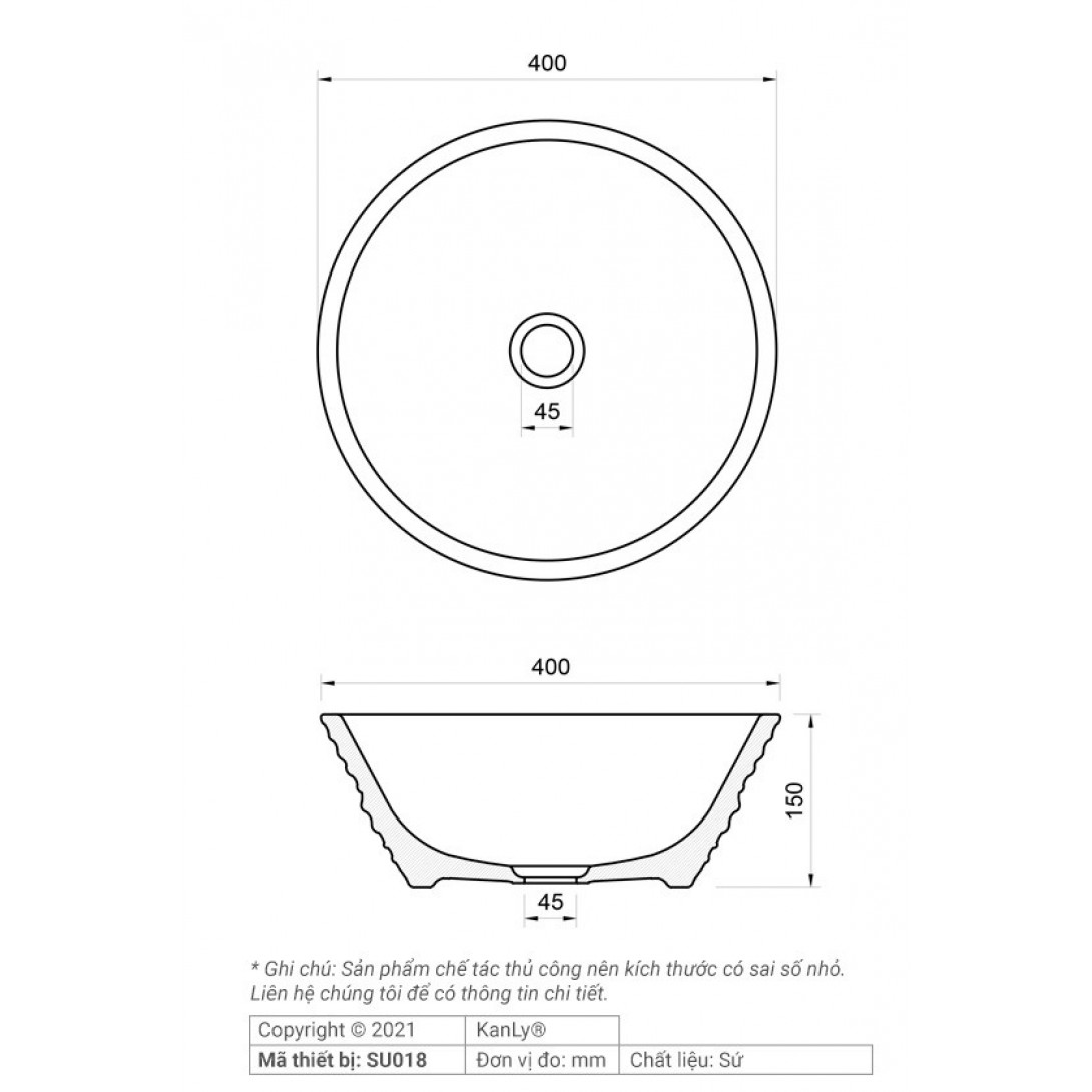 Chậu rửa Kanly bằng gốm sứ sản xuất thủ công, chậu sứ mỹ thuật, có thể dùng như lavabo sứ để nổi trên mặt bàn.