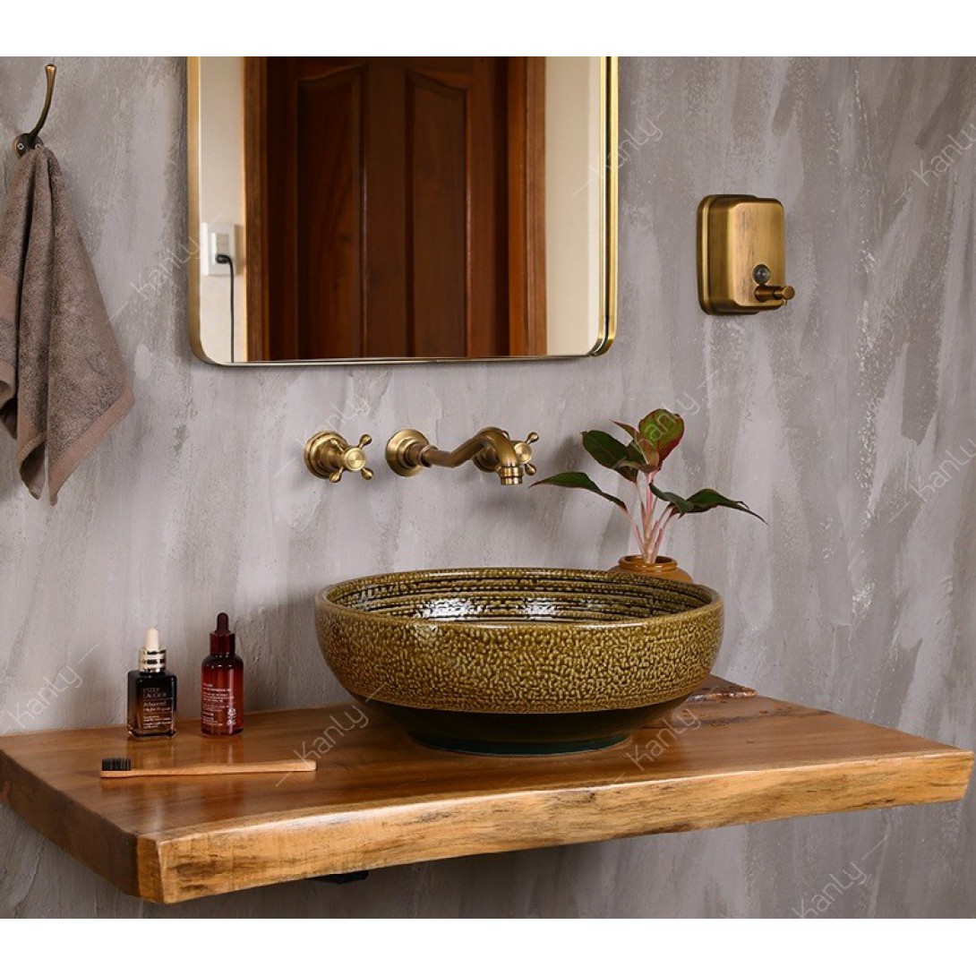 Chậu rửa Kanly bằng gốm sứ sản xuất thủ công, chậu sứ mỹ thuật, có thể dùng như lavabo sứ để nổi trên mặt bàn.