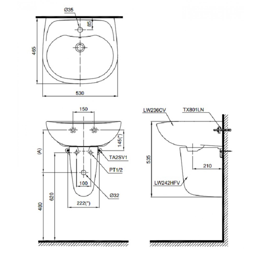 Chậu Rửa Mặt Lavabo COTTO C0225 Kate Bán Âm Bàn