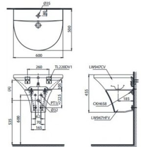 Gợi ý vòi nước kết hợp: Vòi nóng lạnh (đã bao gồm chặn nước và dây cấp) TLS04301V, TLS01301V, TLS02301V, TLG04301V,…– Ống thải nước: TVLF401