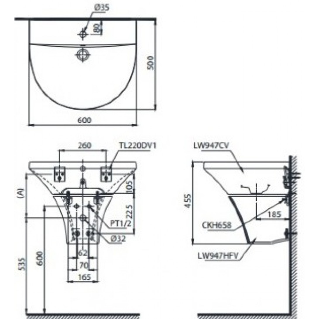 Chậu lavavbo TOTO LHT947CS, chân ngắn treo tường của hãng thiết bị vệ sinh TOTO