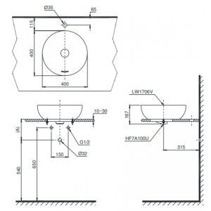 Chậu Rửa Mặt Lavabo TOTO LT4716G17#MW Đặt Bàn Màu Trắng Mờ 600×380 mm