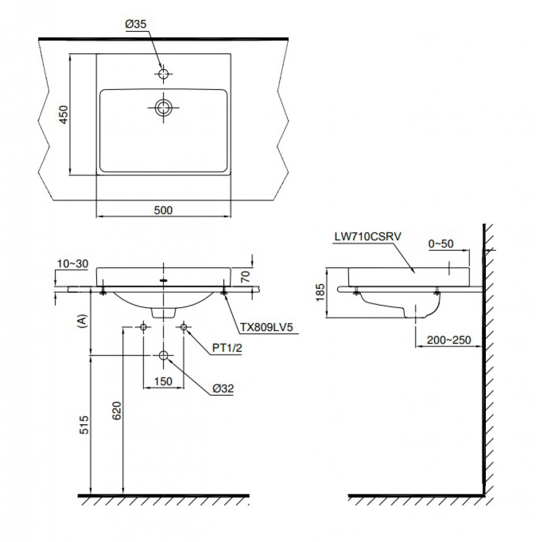 Bản vẽ bồn rửa mặt TOTO LT710CSR#XW