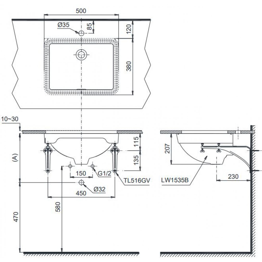 Chậu Rửa Mặt Lavabo COTTO C0240 Julia Bán Âm Bàn